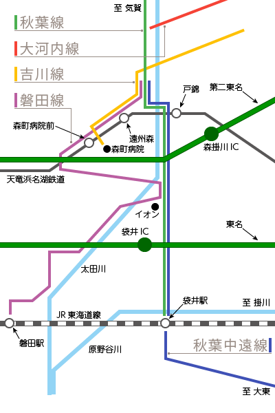 気多/春野支所/天竜高校/平尾/元開橋/森町病院/山梨/袋井駅